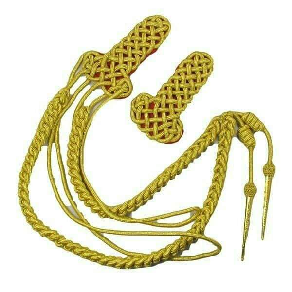 Elevate the prestige of any dress uniform with this high-quality Gold Ceremonial Aiguillette and Shoulder Board Set. Crafted with intricate braiding and finished with polished metal tips, this set is designed for military officers, honor guards, marching bands, or high-end theatrical costumes.